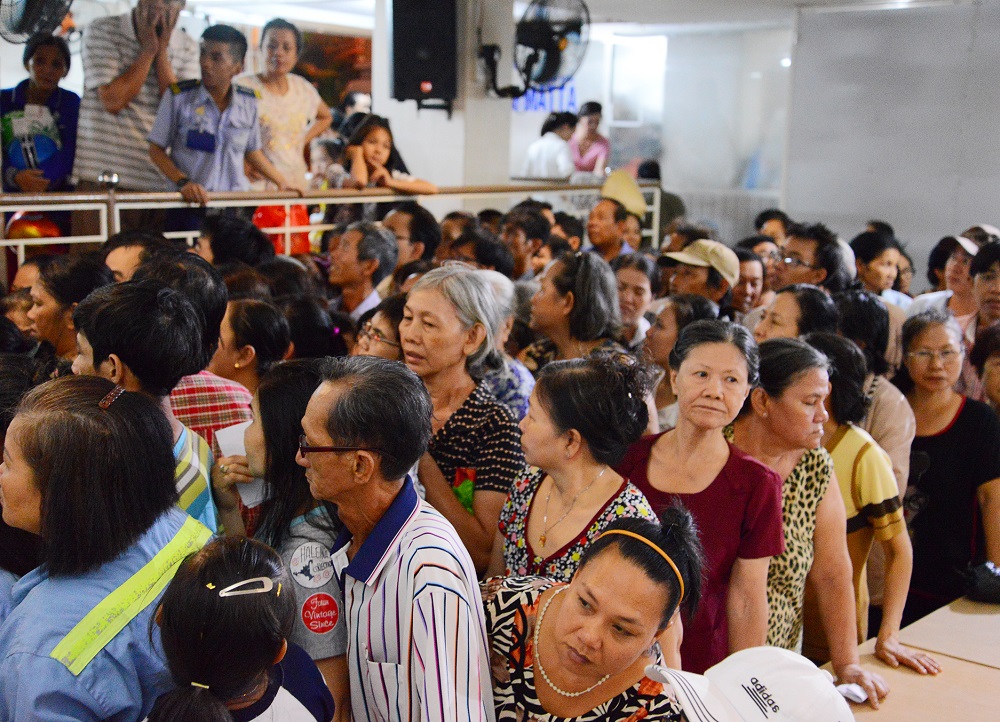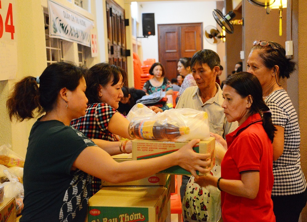 Năm nay, trước tình hình kinh tế suy giảm, cha chánh xứ và Hội đồng Mục vụ giáo xứ quyết tâm làm sao cho các phần quà Tết vẫn đảm bảo đầy đủ, không ít hơn năm trước. Và trong sự quan phòng của Thiên Chúa, cho đến cận ngày khai mạc, ai nấy đều vui mừng vì chắc chắn anh chị em nghèo sẽ vui tươi và ấm lòng. Quả đúng như mong ước, gần 400 phần quà gồm: gạo, mì gói, trứng, sữa, đường, dầu ăn, bột giặt, quần áo... trị giá hơn 300 triệu đồng đã được trao cho anh chị em nghèo. Họ là những người cơ nhỡ, khuyết tật, già yếu neo đơn, bán vé số, thu gom ve chai, bán hàng rong, những anh chị em khó khăn của giáo xứ cũng như các giáo xứ trong Giáo phận. Họ đến từ các quận: 3, 12, Bình Chánh, Nhà Bè, Hóc Môn và Gò Vấp. Trong số đó, hầu hết là những người không biết Đức Kitô là ai. Nhưng với họ, nhà thờ Vườn Xoài lại là một địa chỉ rất gần gũi, thân quen trong những khi họ ngược xuôi vất vả sinh nhai. Hôm nay, tất cả những anh chị em ấy đang vui tươi, bớt lo lắng khi cái Tết đã cận kề. Bởi lẽ, họ đang được yêu thương, sẻ chia nhờ những tấm lòng nhân ái. Cái oằn vai của ngày hôm nay không phải do sự vất vả của khó khăn, đau khổ từng ngày, mà là suy nghĩ làm sao để có thể mang hết những món quà này về nhà. Một chị ngụ tại huyện Hóc Môn tâm sự rằng: “Tôi không thể nghĩ ra mình nhận được nhiều quà như thế. Cái Tết này là cái Tết đáng nhớ nhất trong đời tôi”.