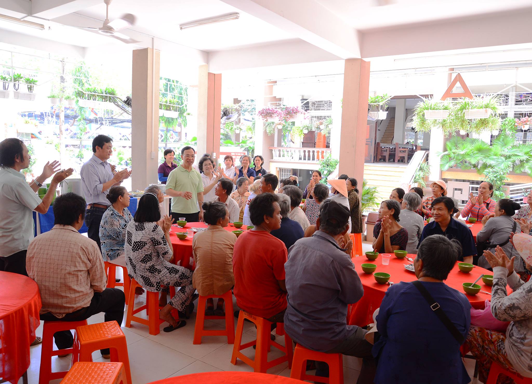 Tổng cộng số người tham dự bữa cơm mừng Chúa Phục Sinh là 130 người, họ là những người kiếm ăn từng bữa, khuyết tật, già cả, neo đơn, lang thang… Trong số đó, có những người thường xuyên được giáo xứ chăm sóc, trợ giúp. Với sự hiện diện của cha chánh xứ, vị đại diện Hội đồng Mục vụ giáo xứ, Ban Caritas, các anh chị em có hoàn cảnh khó khăn không còn cảm giác xa lạ mà như những vị khách mời đặc biệt của giáo xứ. Qua phong cách phục vụ, tiếp đón ân cần của Ban Caritas cũng như bài trí bàn ăn, mọi người đều có một bữa trưa rất ngon miệng. Không những thế, sau bữa ăn mỗi người còn được tặng những hộp bánh ngon, ngọt để mang về. Ngoài ra, một số cụ ông, cụ bà không thể đến chung vui cũng đã được Ban Caritas mang cơm và quà đến tận nhà. Ai nấy đều vui vẻ và cảm động trước nghĩa cử cao đẹp của giáo xứ.