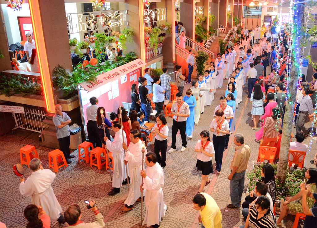 Lời của thiên thần loan báo với các mục đồng cách đây 2000 năm lại vang vọng trong thánh lễ Vọng Giáng Sinh được cử hành trọng thể tại nhà thờ giáo xứ Vườn Xoài vào lúc 19g00, ngày 24.12.2015. Chủ tế là cha Vincentê, đồng tế có cha Antôn Vũ Khánh Tường là người con của giáo xứ (đang làm mục vụ tại Nhật Bản). Năm nay, lượng giáo dân đổ về nhà thờ tham dự thánh lễ ngoài sức tưởng tượng. Ngoài giáo dân trong giáo xứ, còn có sự hiện diện của những anh chị em tín hữu ngoại quốc đang làm và sinh sống tại Việt Nam. Họ cho biết rất thích đi lễ tại đây và không khí đón Giáng Sinh tại Việt Nam